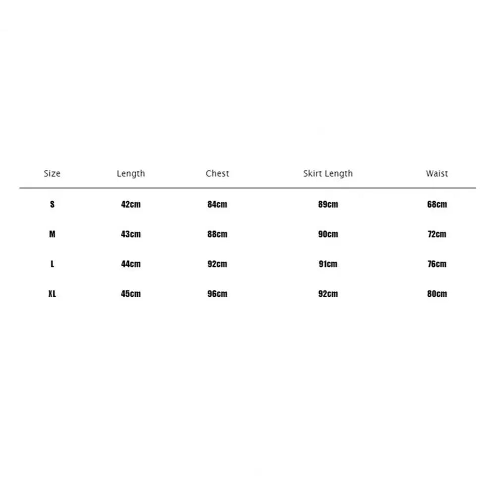 Size: XL, Top Length: 45cm/17.7", Bust: 96cm/37.8", Skirt Length: 92cm/36.2", Waist: 80cm/31.5" (Approx.)