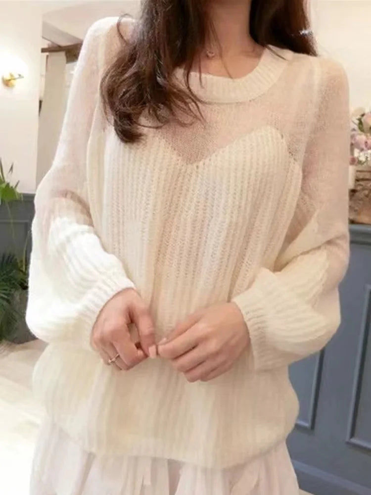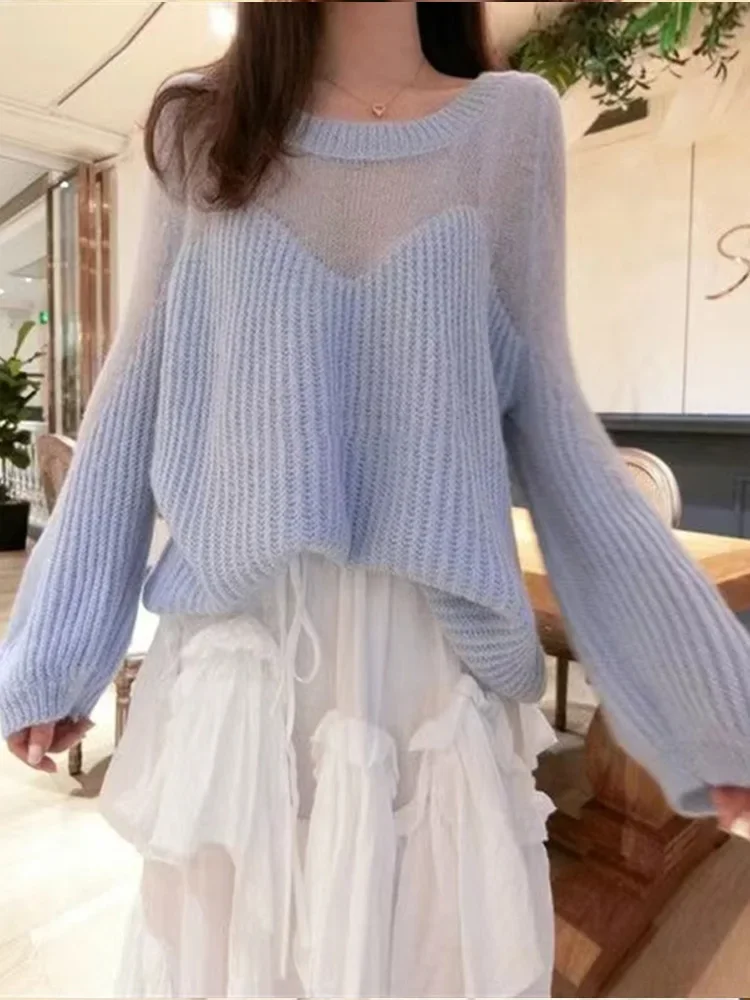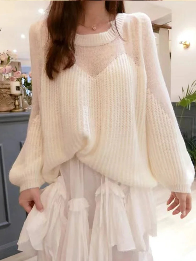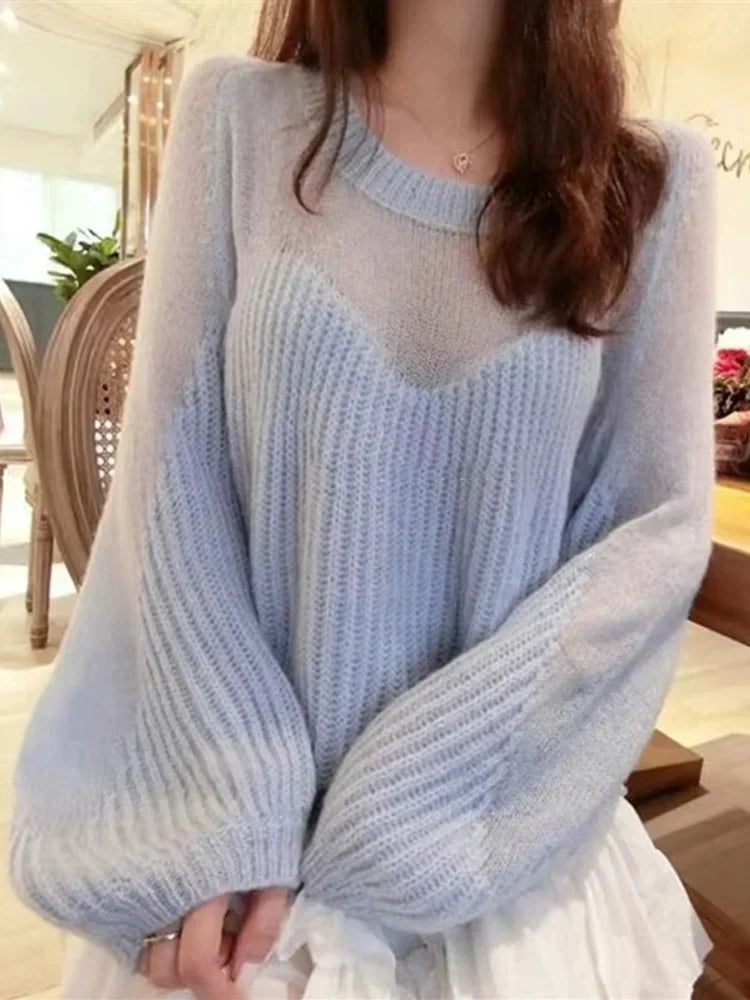 Autumn Women's Lantern Sleeve Sweater - Casual Loose Long Sleeve Hoodie, Breathable Knitted Top 6896
