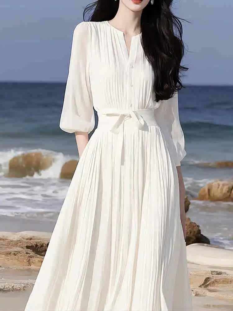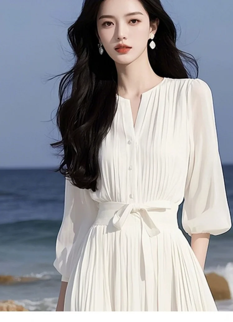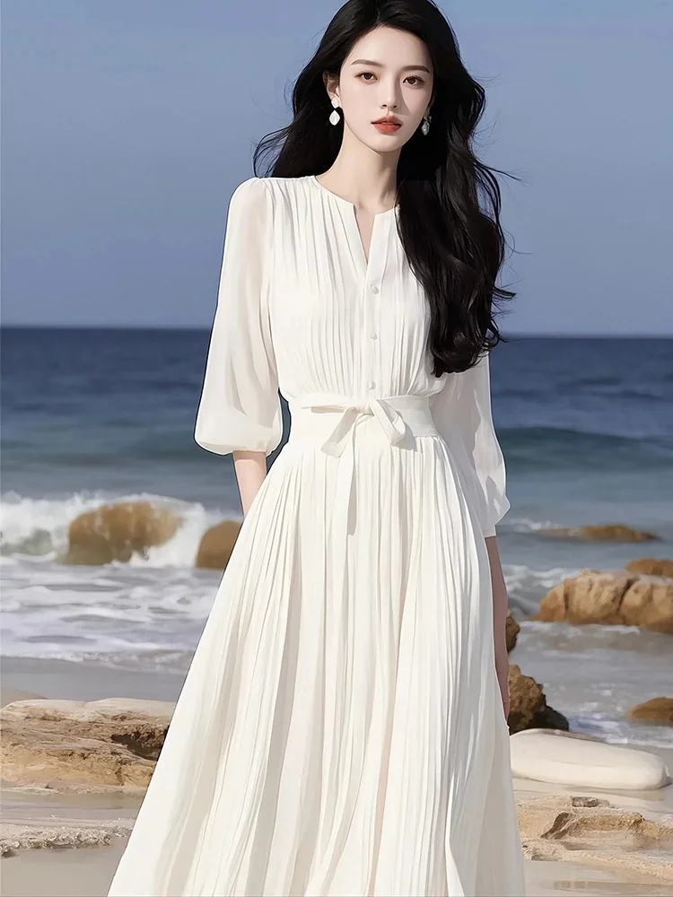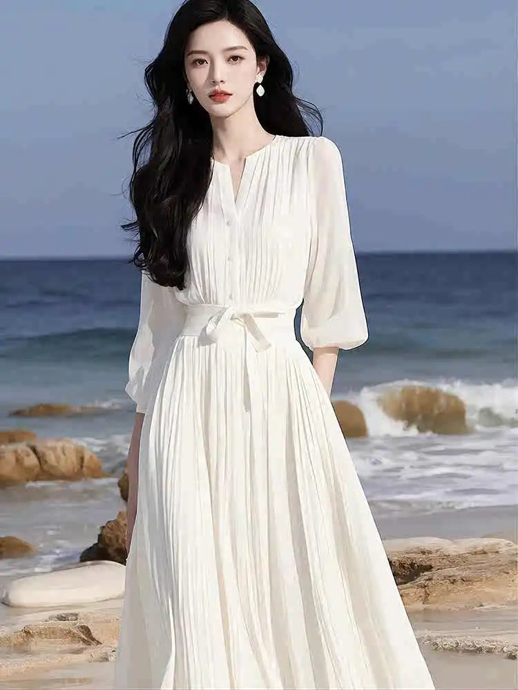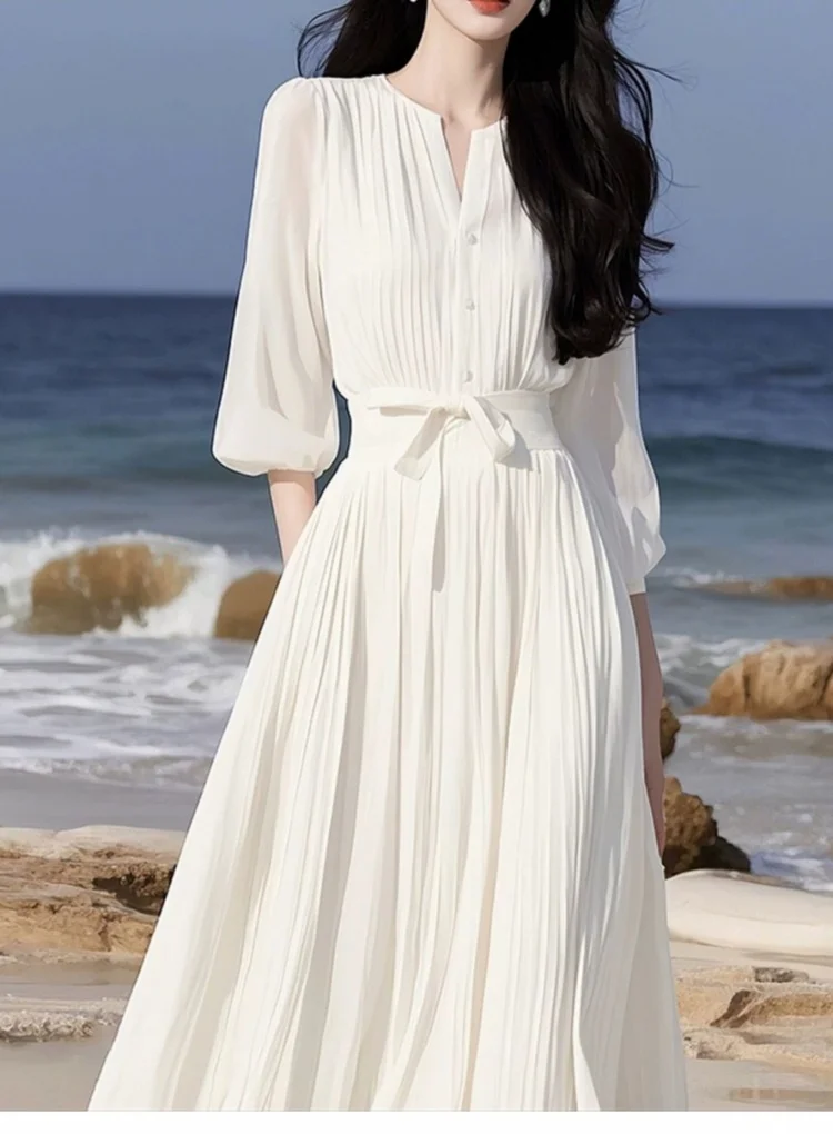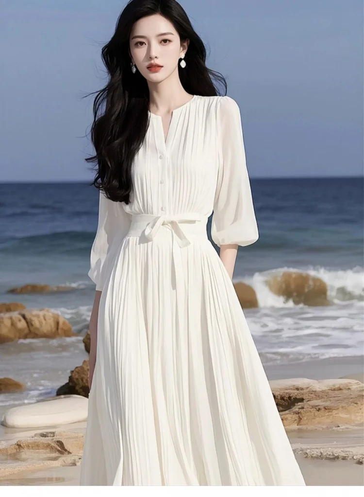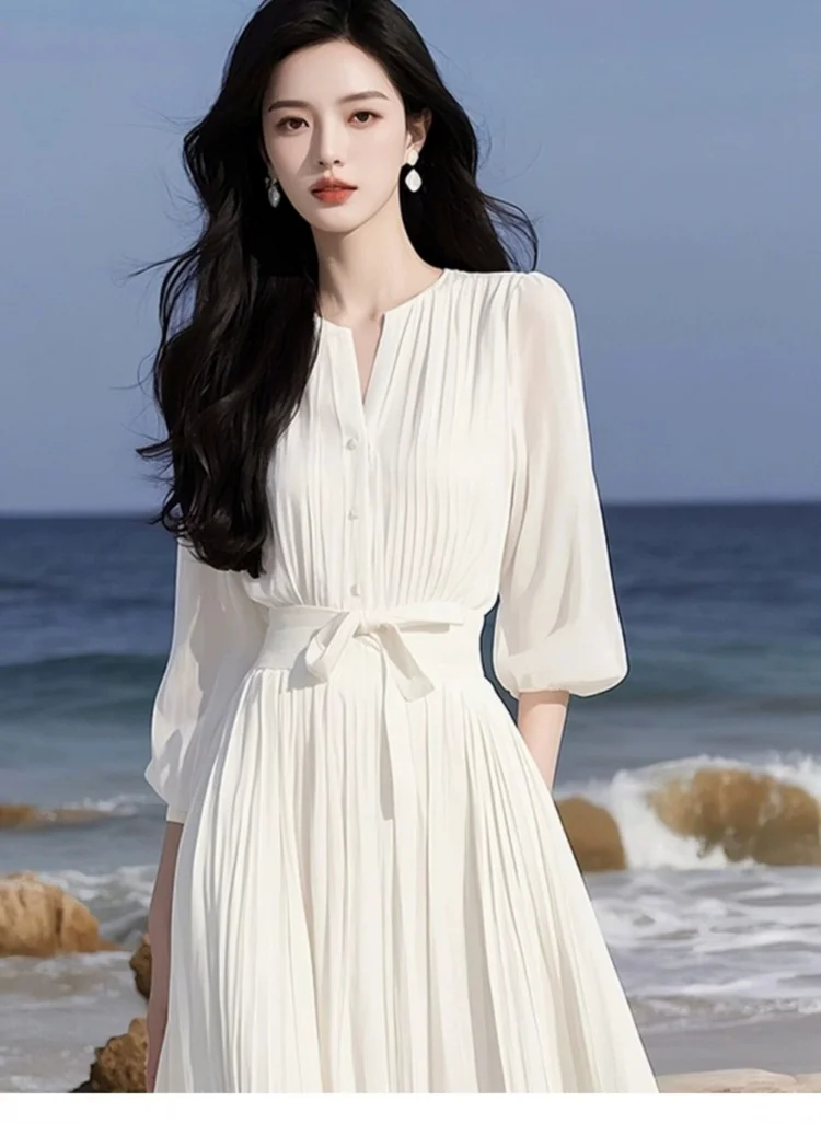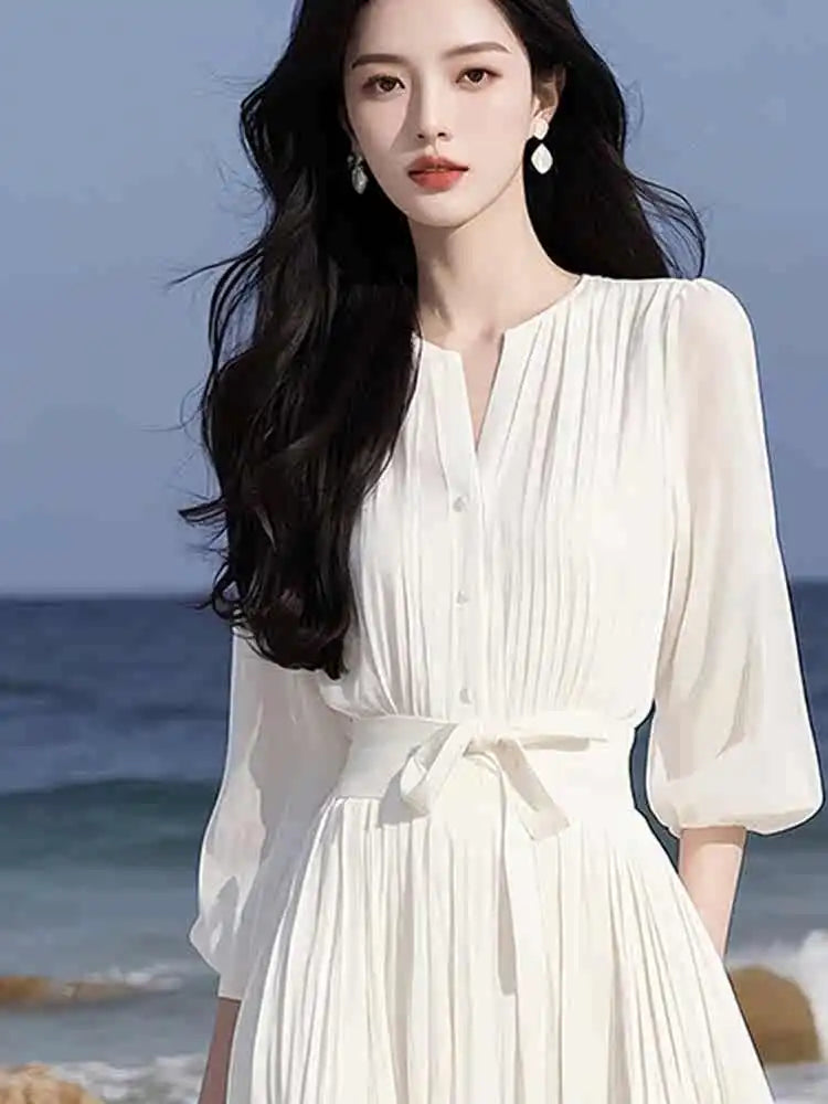 Exude elegance with this French-style dress, perfect for spring and summer, embodying a sophisticated and gentle charm.