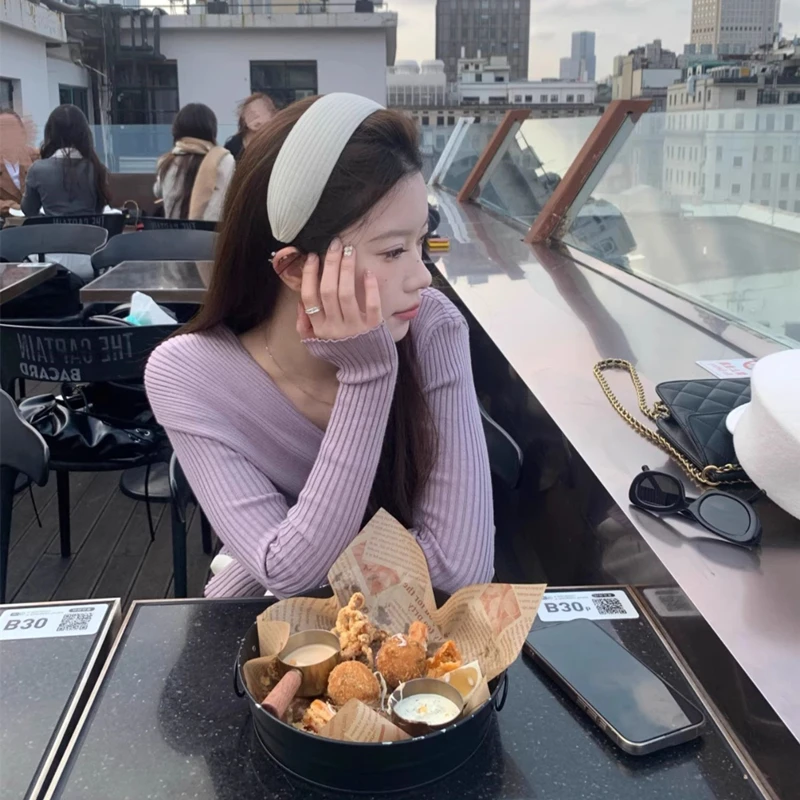 Fashion Autumn Slim Fit Sweater Knitted Top Korean Cross V-neck Knitted Pullover Elegant Solid Color Long Sleeve Women's Sweater