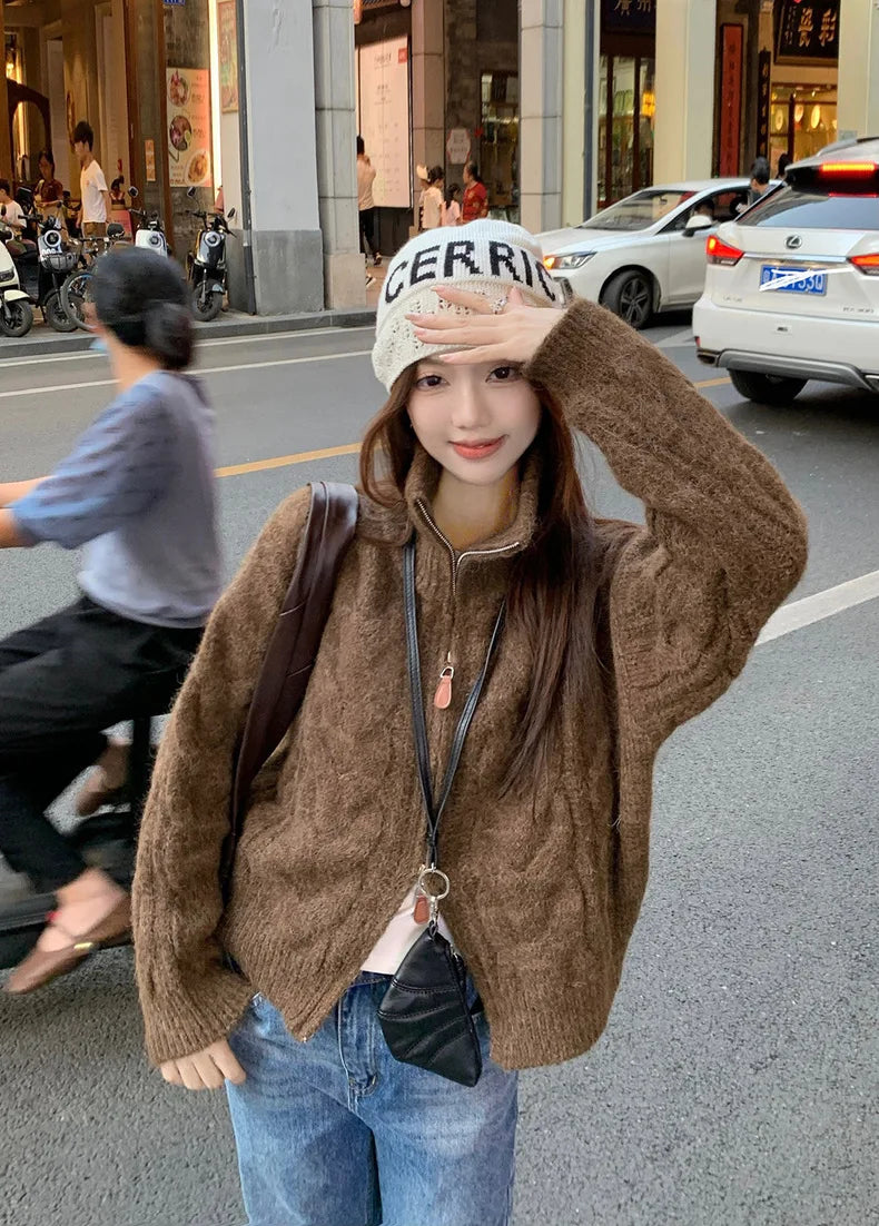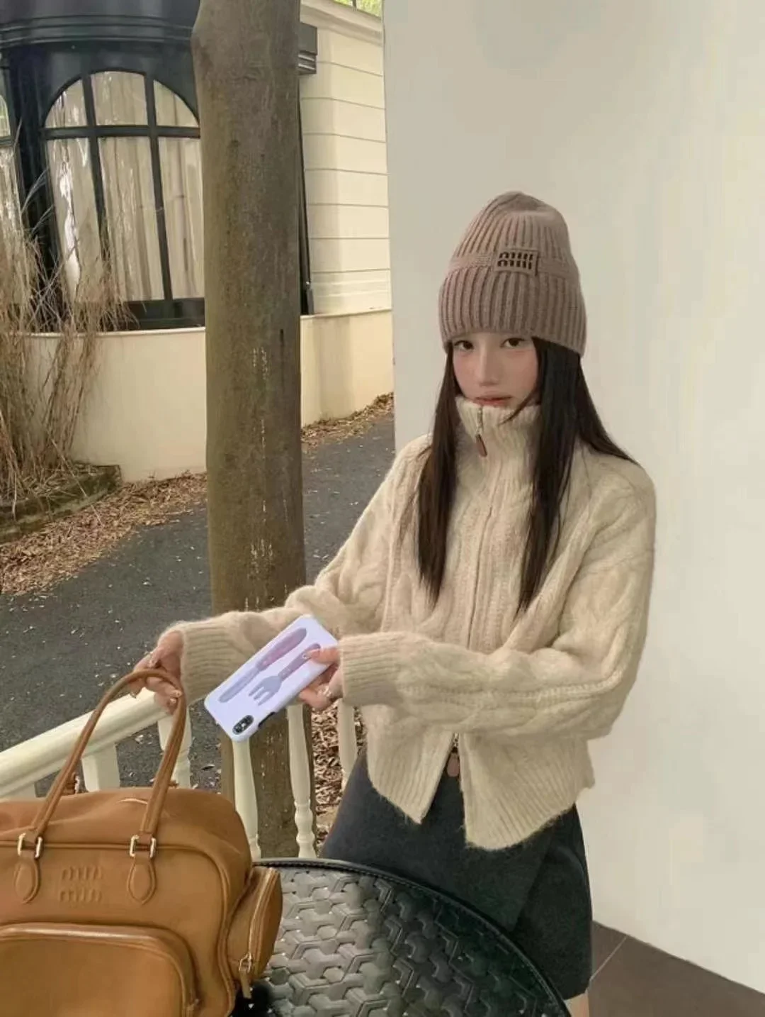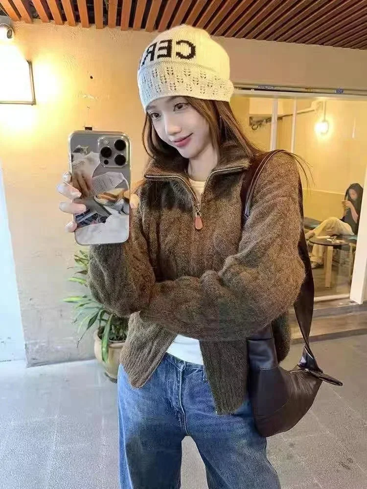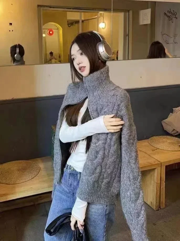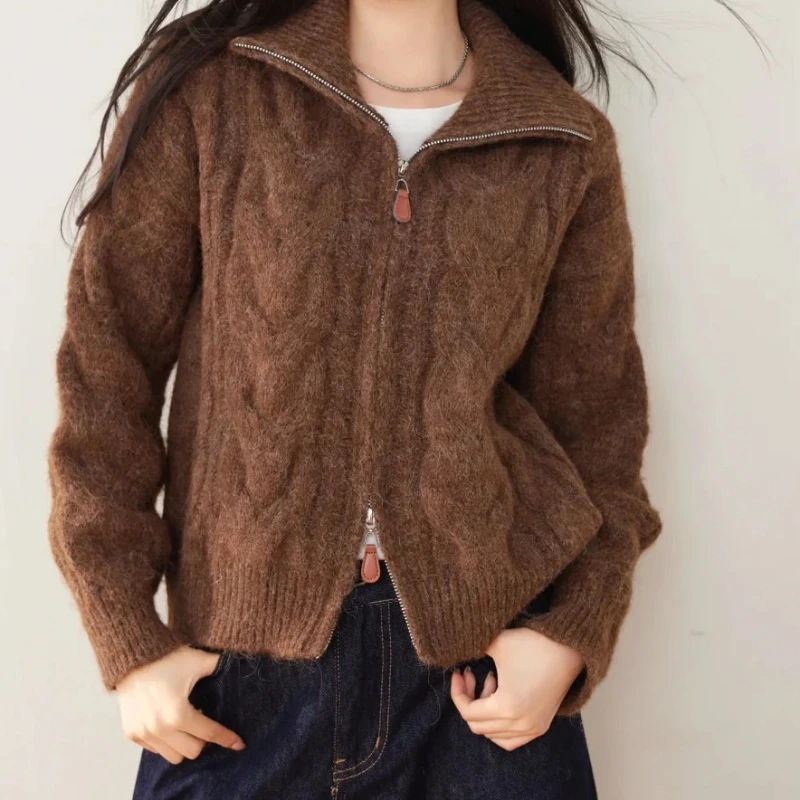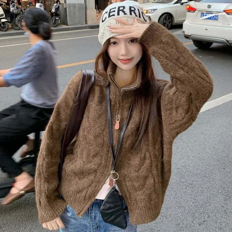 NEW Autumn Winter Women's Long Sleeve Elegant Sweater Knitted Top Cardigan Double Zipper Casual Chic Fashion Warm Outerwear