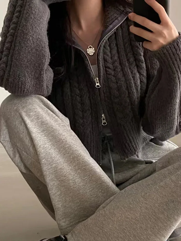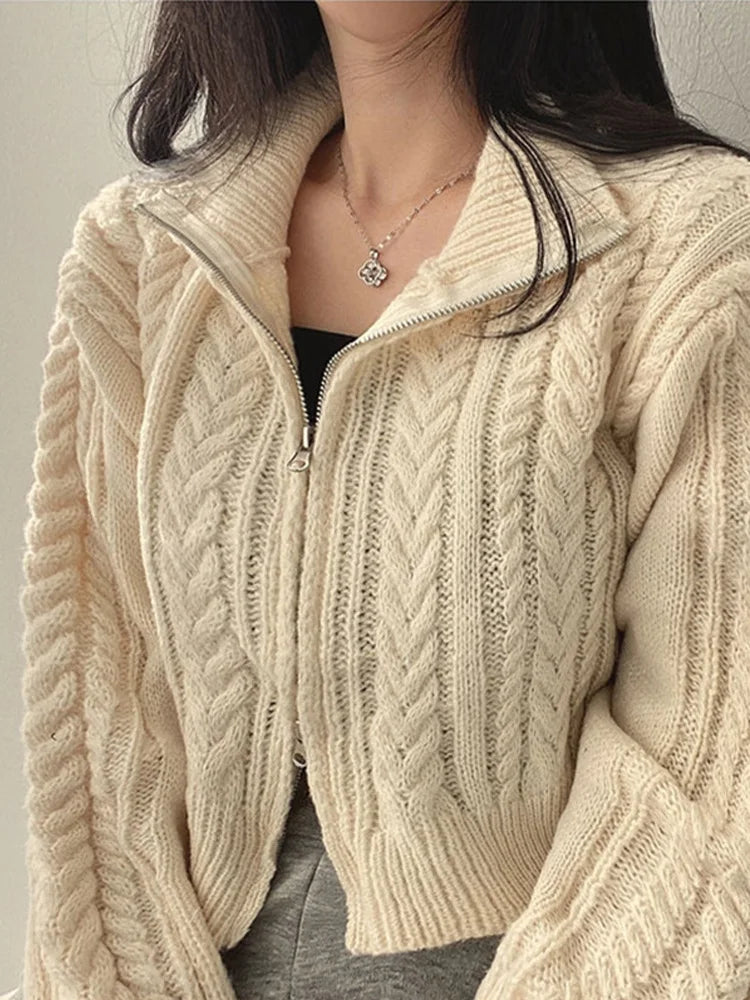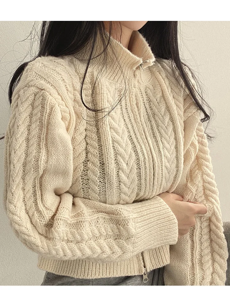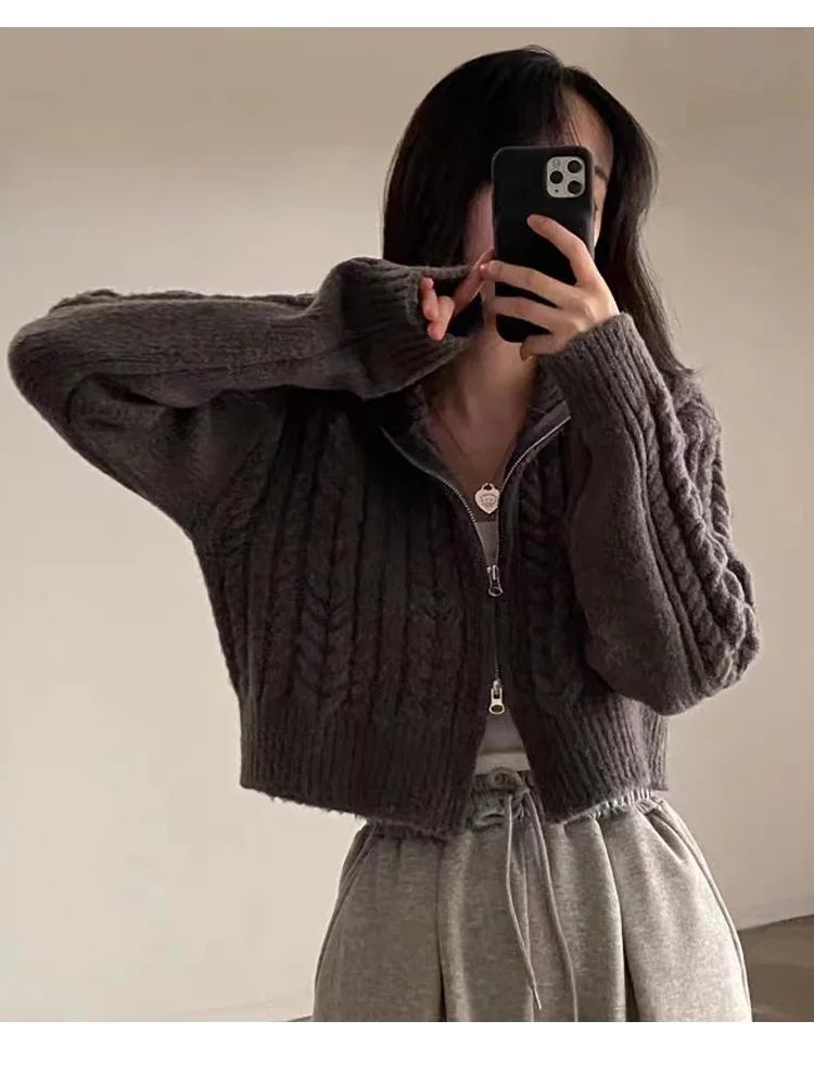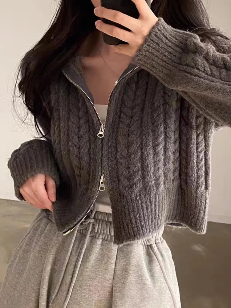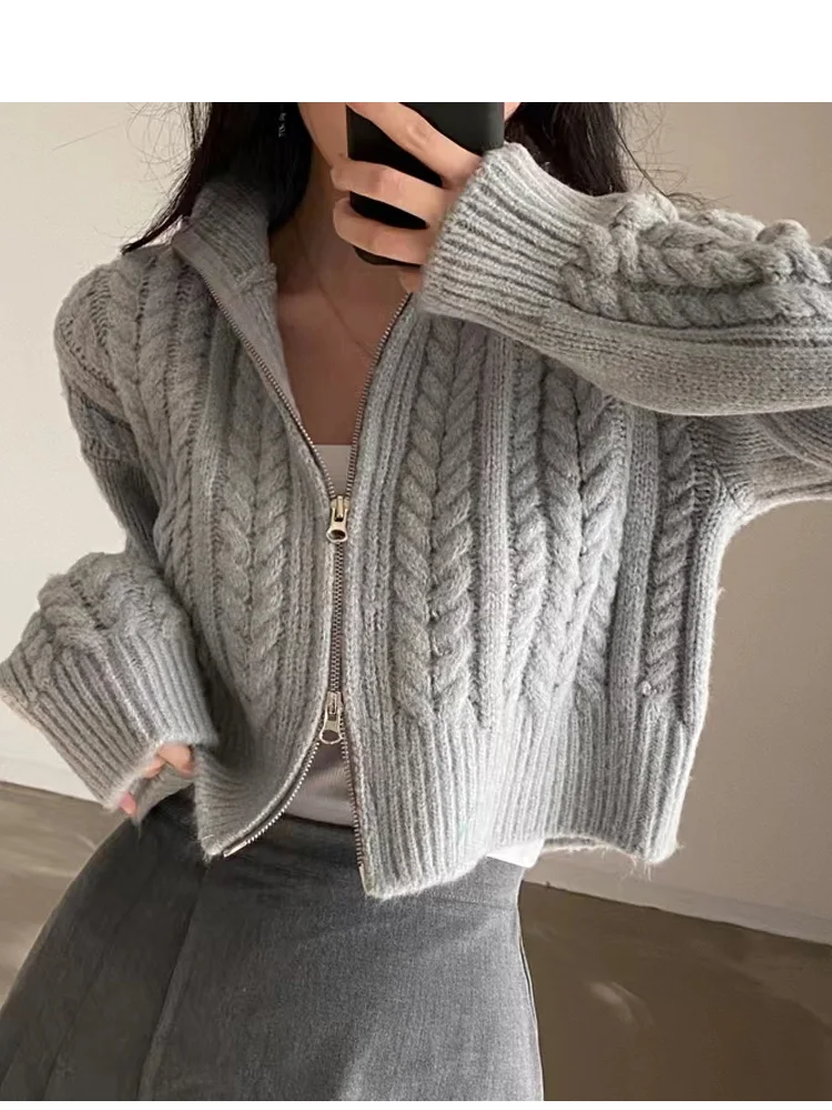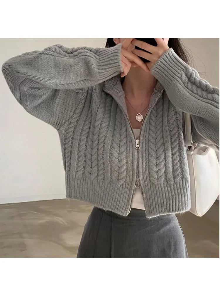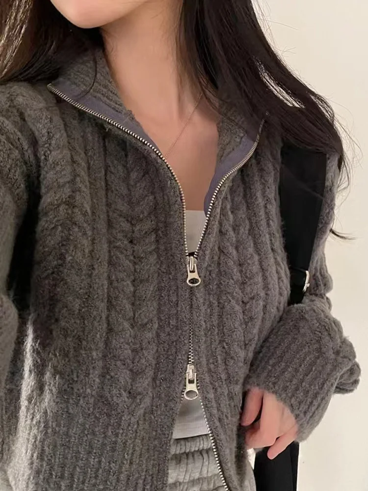 New Fahsion Zipper Long Sleeve Knitted Cardigan Women Sweaters Autumn Winter Slim Elegant Women's Sweaters Coat Winter Clothes