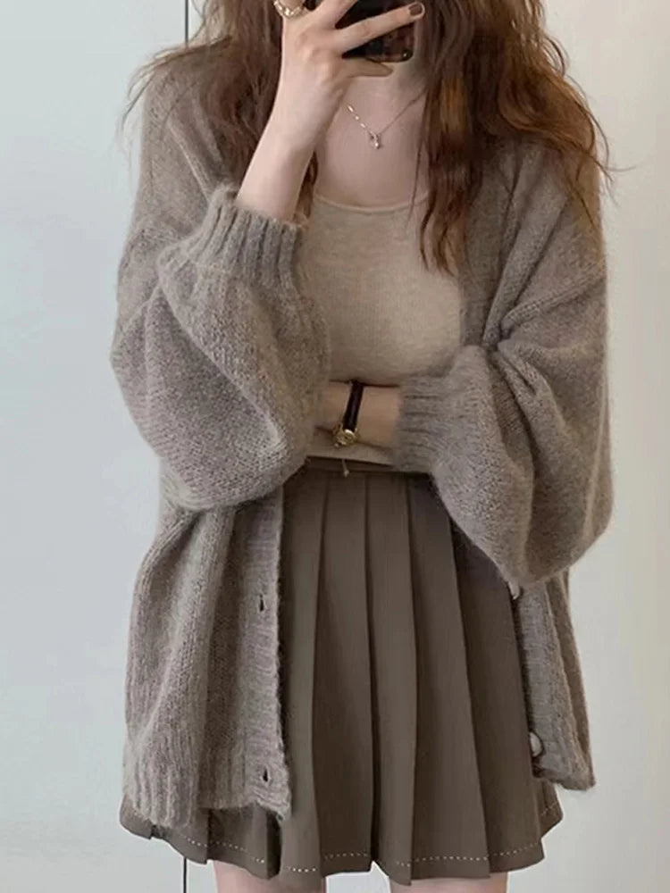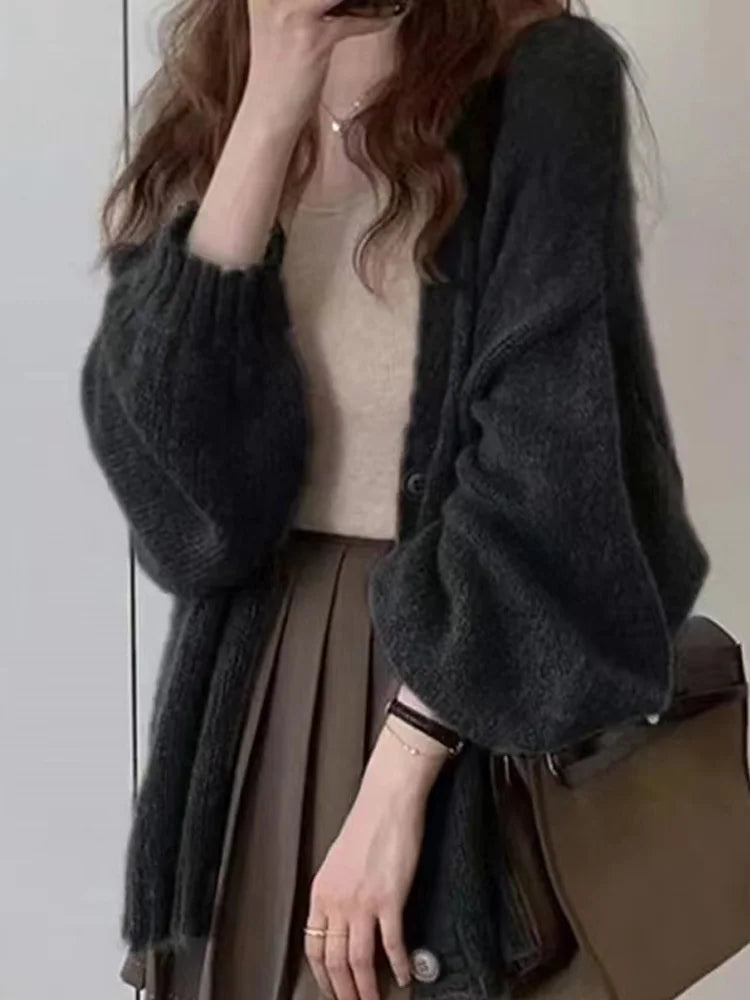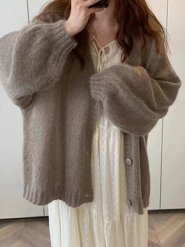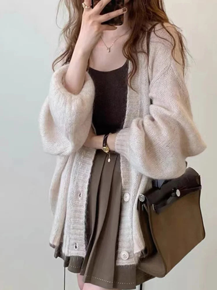 New Fashion Puff Sleeve Button Knitted Cardigan Women's Weaters Autumn Winter Long Sleeve Casual Loose Women Sweater Coat