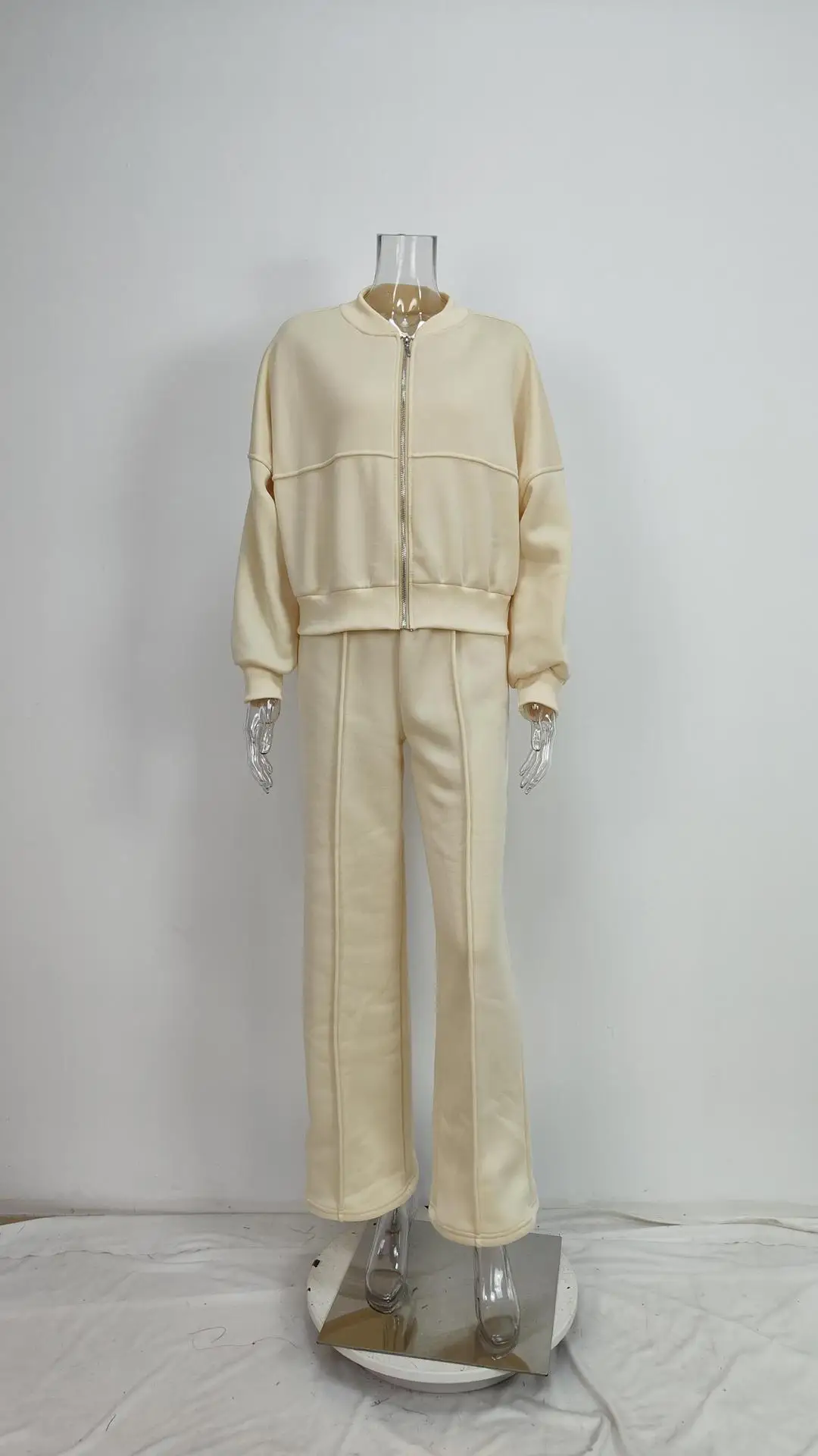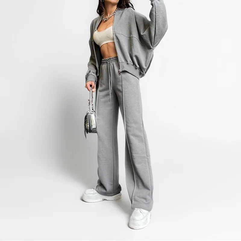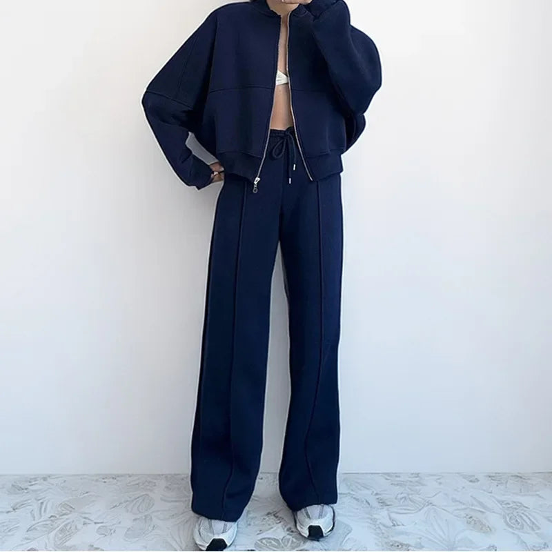 Women's Fleece-Lined Hoodie Coat High Waist Casual Pants Set Winter Thick Warm Outdoor Streetwear Loose Tracksuit